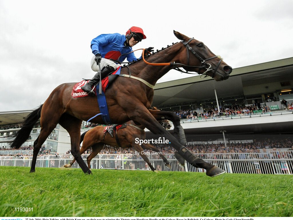 27 July 2016; Plain Talking, with Briain Kane up, on their way to winning the Thetote.com Handicap Hurdle at the Galway Races in Ballybrit, Co Galway. Photo by Cody Glenn/Sportsfile