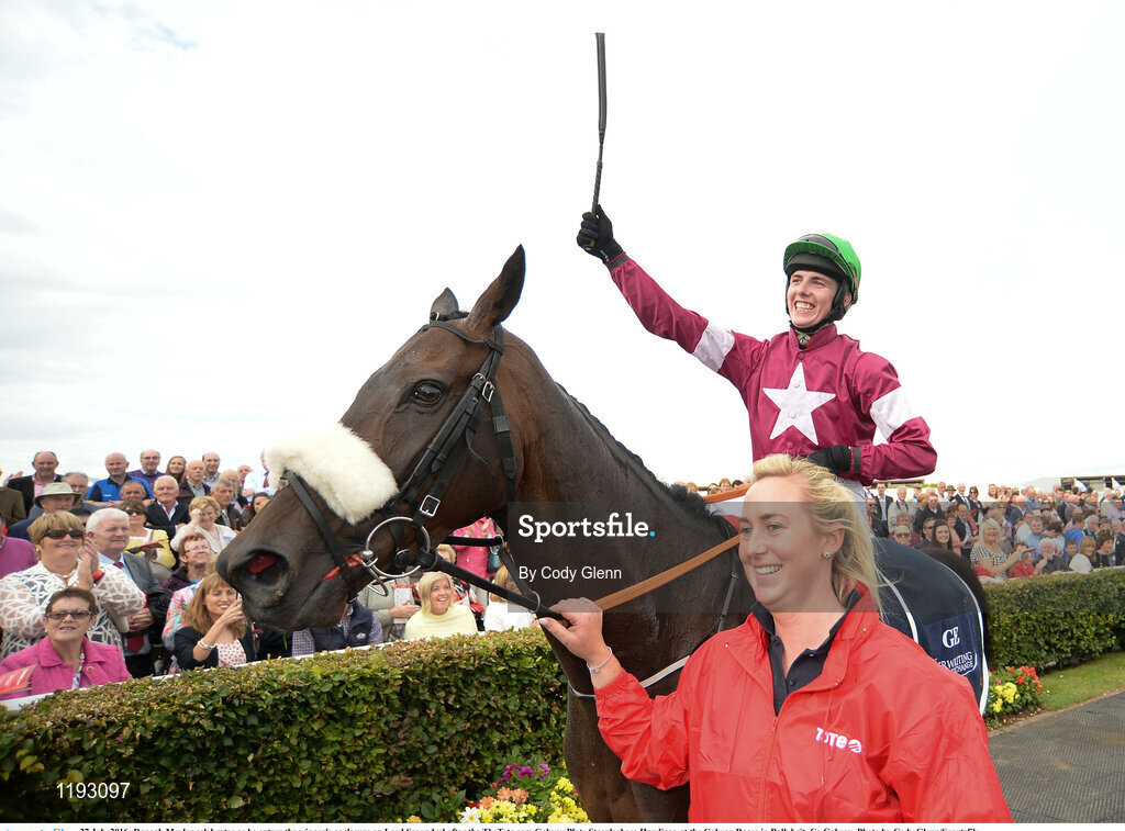 27 July 2016; Donagh Meyler celebrates as he enters the winner's enclosure on Lord Scoundrel after the TheTote.com Galway Plate Steeplechase Handicap at the Galway Races in Ballybrit, Co Galway. Photo by Cody Glenn/Sportsfile
