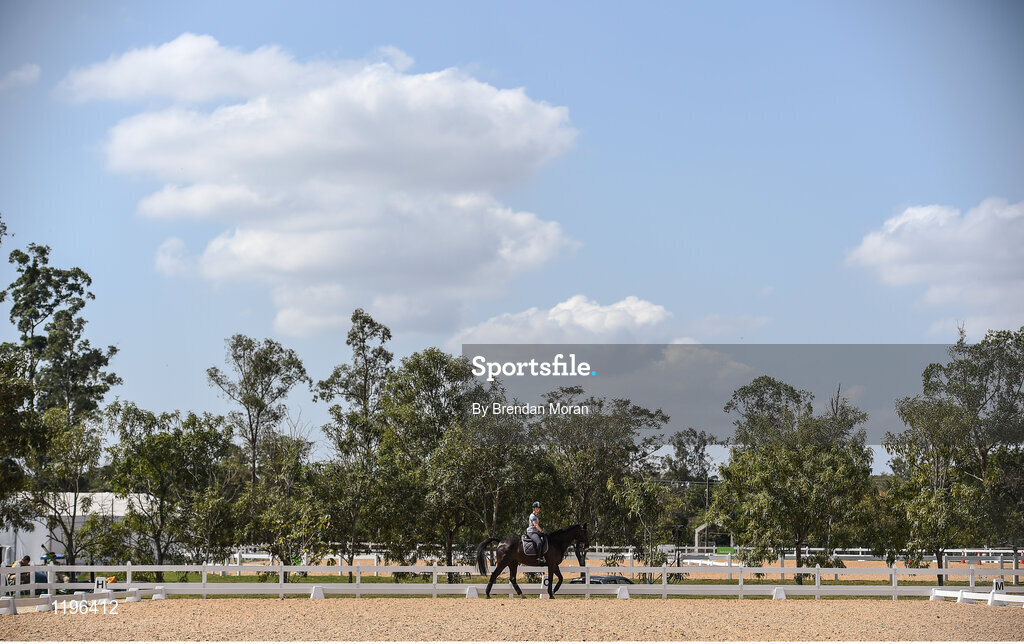 4 August 2016; Judy Reynolds of Ireland on Vancouver K during dressage training at the Olympic Equestrian Centre in Deodora ahead of the start of the 2016 Rio Summer Olympic Games in Rio de Janeiro, Brazil. Photo by Brendan Moran/Sportsfile