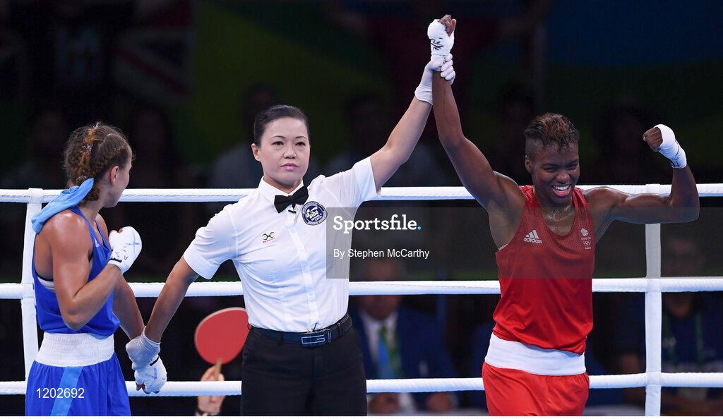 16 August 2016; Nicola Adams of Great Britain is declared victorious over Tetyana Kob of Ukraine during their Women's Flyweight Quarterfinal bout at the Riocentro Pavillion 6 Arena during the 2016 Rio Summer Olympic Games in Rio de Janeiro, Brazil. Photo by Stephen McCarthy/Sportsfile
