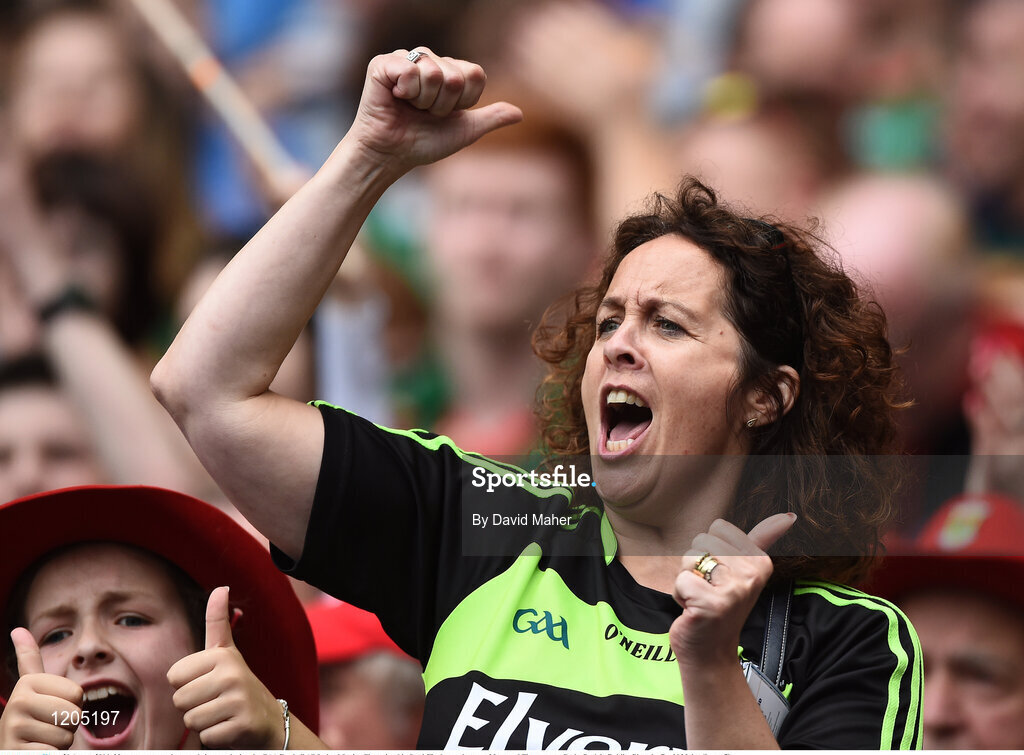 21 August 2016; Mayo supporters cheer on their team during the GAA Football All-Ireland Senior Championship Semi-Final game between Mayo and Tipperary at Croke Park in Dublin. Photo by David Maher/Sportsfile