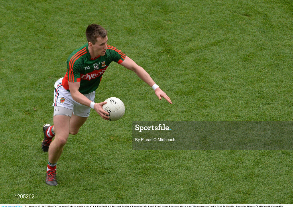 21 August 2016; Cillian O’Connor of Mayo during the GAA Football All-Ireland Senior Championship Semi-Final game between Mayo and Tipperary at Croke Park in Dublin. Photo by Piaras Ó Mídheach/Sportsfile