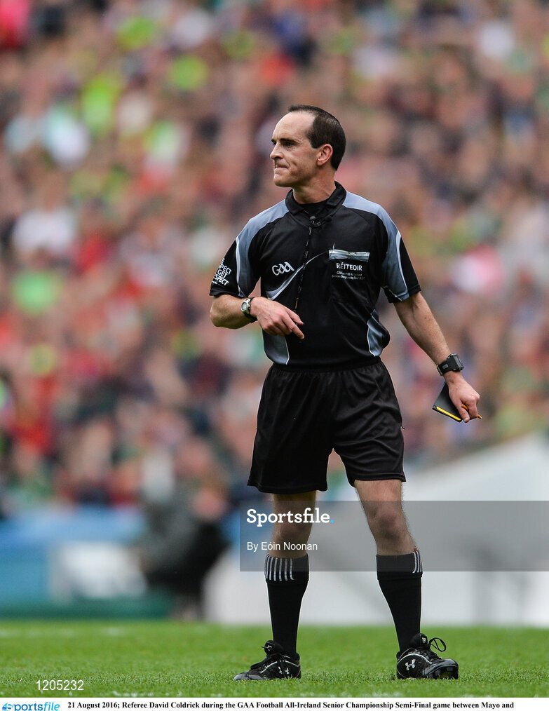 21 August 2016; Referee David Coldrick during the GAA Football All-Ireland Senior Championship Semi-Final game between Mayo and Tipperary at Croke Park in Dublin. Photo by Eóin Noonan/Sportsfile