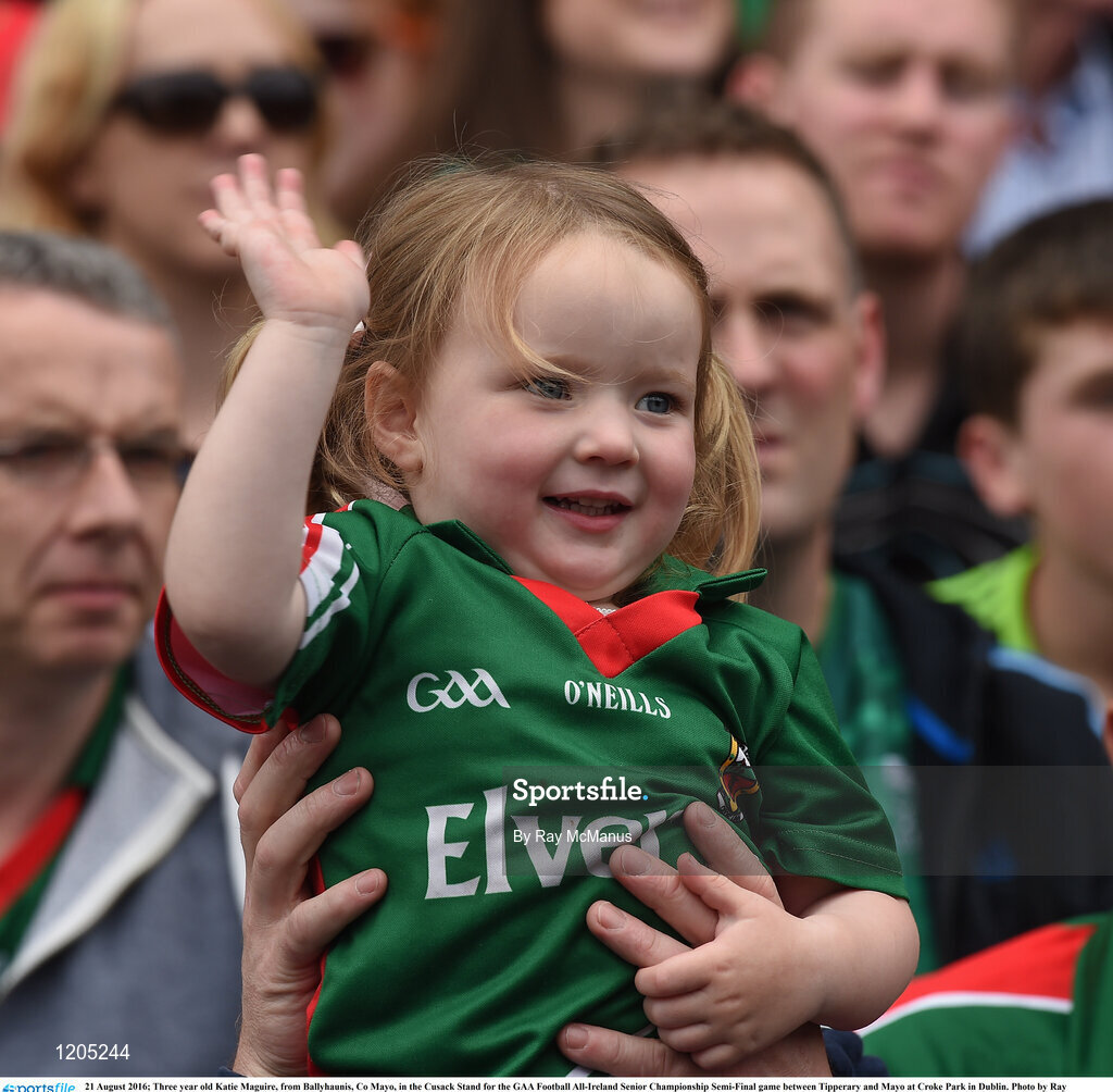 21 August 2016; Three year old Katie Maguire, from Ballyhaunis, Co Mayo, in the Cusack Stand for the GAA Football All-Ireland Senior Championship Semi-Final game between Tipperary and Mayo at Croke Park in Dublin. Photo by Ray McManus/Sportsfile