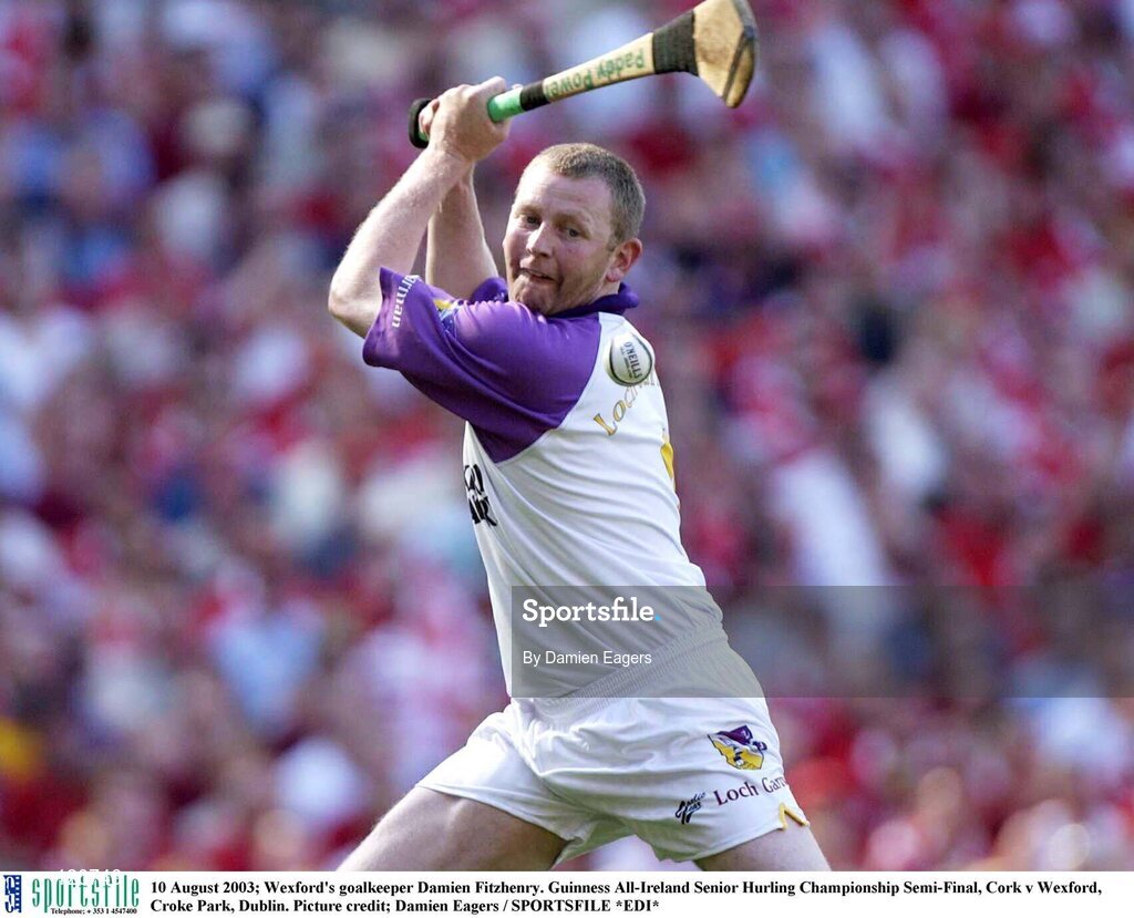 10 August 2003; Wexford's goalkeeper Damien Fitzhenry using a Paddy Power sponsored hurl during the Guinness All-Ireland Senior Hurling Championship Semi-Final match between Cork and Wexford at Croke Park in Dublin. Photo by Damien Eagers/Sportsfile