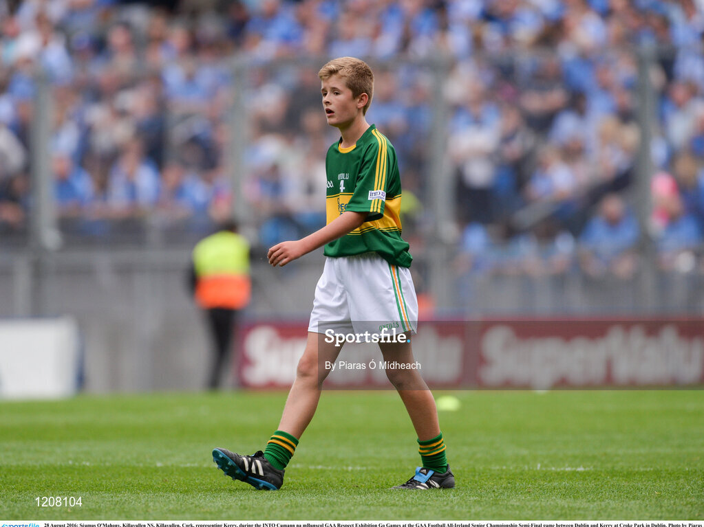 28 August 2016; Séamus O'Mahony, Killavullen NS, Killavullen, Cork, representing Kerry, during the INTO Cumann na mBunscol GAA Respect Exhibition Go Games at the GAA Football All-Ireland Senior Championship Semi-Final game between Dublin and Kerry at Croke Park in Dublin. Photo by Piaras Ó Mídheach/Sportsfile