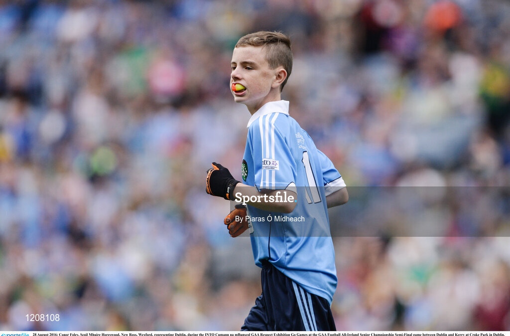 28 August 2016; Conor Foley, Scoil Mhuire Horeswood, New Ross, Wexford, representing Dublin, during the INTO Cumann na mBunscol GAA Respect Exhibition Go Games at the GAA Football All-Ireland Senior Championship Semi-Final game between Dublin and Kerry at Croke Park in Dublin. Photo by Piaras Ó Mídheach/Sportsfile