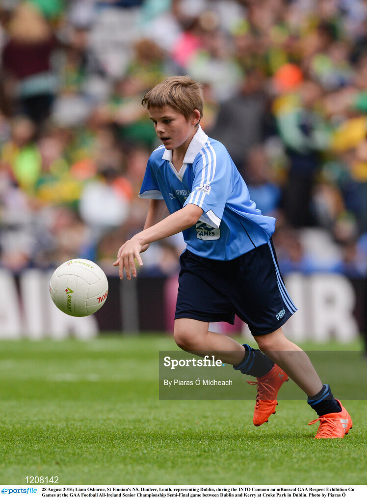 28 August 2016; Liam Osborne, St Finnian's NS, Dunleer, Louth, representing Dublin, during the INTO Cumann na mBunscol GAA Respect Exhibition Go Games at the GAA Football All-Ireland Senior Championship Semi-Final game between Dublin and Kerry at Croke Park in Dublin. Photo by Piaras Ó Mídheach/Sportsfile