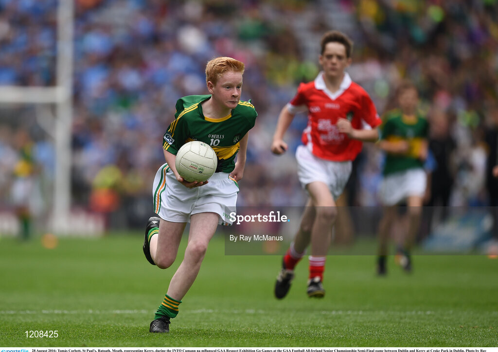 28 August 2016; Tomás Corbett, St Paul's, Ratoath, Meath, representing Kerry, during the INTO Cumann na mBunscol GAA Respect Exhibition Go Games at the GAA Football All-Ireland Senior Championship Semi-Final game between Dublin and Kerry at Croke Park in Dublin. Photo by Ray McManus/Sportsfile