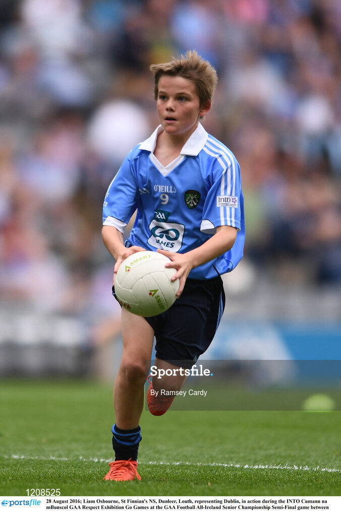 28 August 2016; Liam Osbourne, St Finnian's NS, Dunleer, Louth, representing Dublin, in action during the INTO Cumann na mBunscol GAA Respect Exhibition Go Games at the GAA Football All-Ireland Senior Championship Semi-Final game between Dublin and Kerry at Croke Park in Dublin. Photo by Ramsey Cardy/Sportsfile