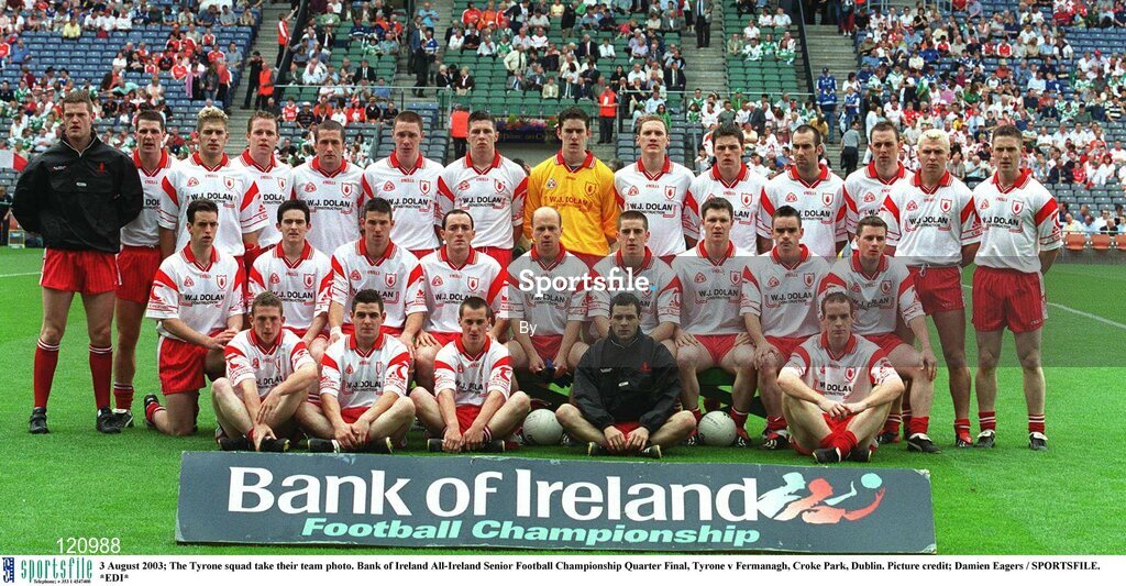 3 August 2003; The Tyrone squad take their team photo. Bank of Ireland All-Ireland Senior Football Championship Quarter Final, Tyrone v Fermanagh, Croke Park, Dublin. Picture credit; Damien Eagers / SPORTSFILE. *EDI*