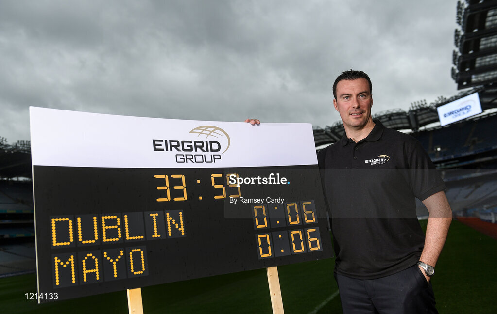 9 September 2016; Former Dublin player Ray Cosgrove was in Croke Park in Dublin today to announce details on the EirGrid Digital Clock Competition launch. EirGrid, the Official Timing Sponsor of Croke Park, are giving one club in each province the chance to win a digital clock and scoreboard. To enter please log onto www.eirgridgroup.com/eirgrid-time-is-now and submit 200 words as to why your club deserves this prize. Photo by Ramsey Cardy/Sportsfile