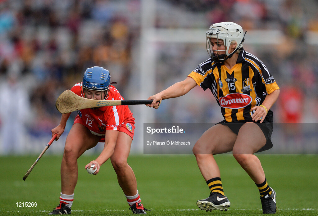 11 September 2016; Eimear O'Sullivan of Cork in action against Shelly Farrell of Kilkenny during the Liberty Insurance All-Ireland Senior Camogie Championship Final match between Cork and Kilkenny at Croke Park in Dublin. Photo by Piaras Ó Mídheach/Sportsfile