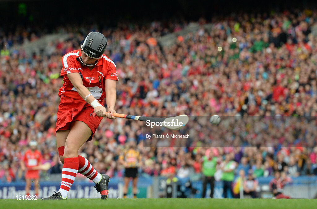 11 September 2016; Cork goalkeeper Aoife Murray takes a first half penalty that was deflected over the bar for a point by Ann Dalton of Kilkenny during the Liberty Insurance All-Ireland Senior Camogie Championship Final match between Cork and Kilkenny at Croke Park in Dublin. Photo by Piaras Ó Mídheach/Sportsfile