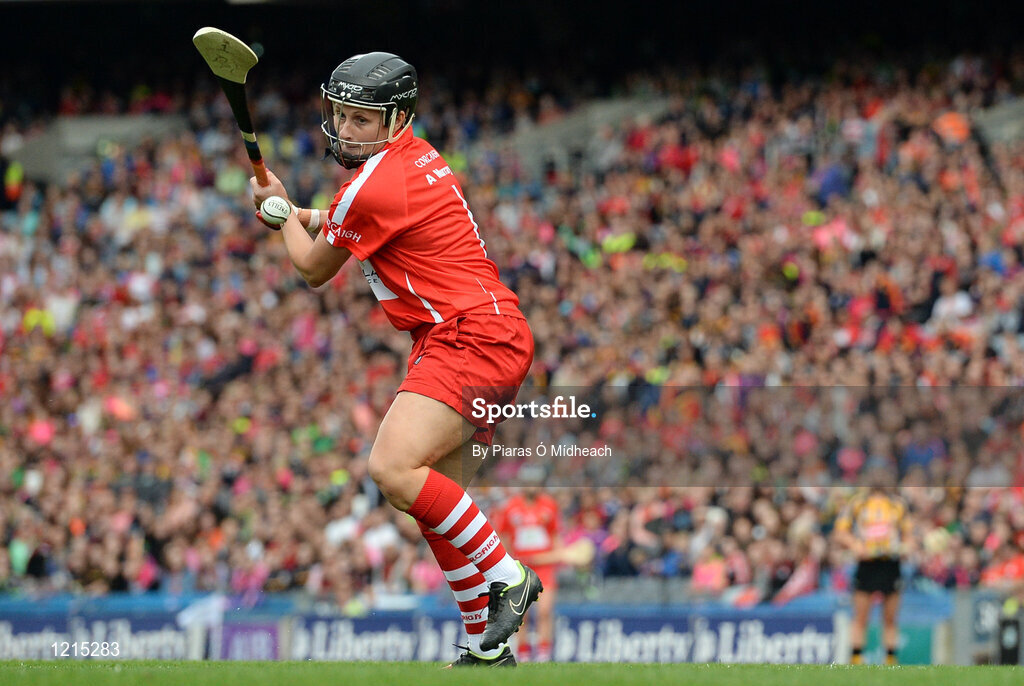 11 September 2016; Cork goalkeeper Aoife Murray takes a first half penalty that was deflected over the bar for a point by Ann Dalton of Kilkenny during the Liberty Insurance All-Ireland Senior Camogie Championship Final match between Cork and Kilkenny at Croke Park in Dublin. Photo by Piaras Ó Mídheach/Sportsfile