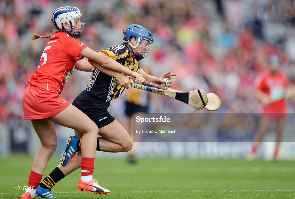 11 September 2016; Julie Ann Malone of Kilkenny in action against Meabh Cahalane of Cork during the Liberty Insurance All-Ireland Senior Camogie Championship Final match between Cork and Kilkenny at Croke Park in Dublin. Photo by Piaras Ó Mídheach/Sportsfile