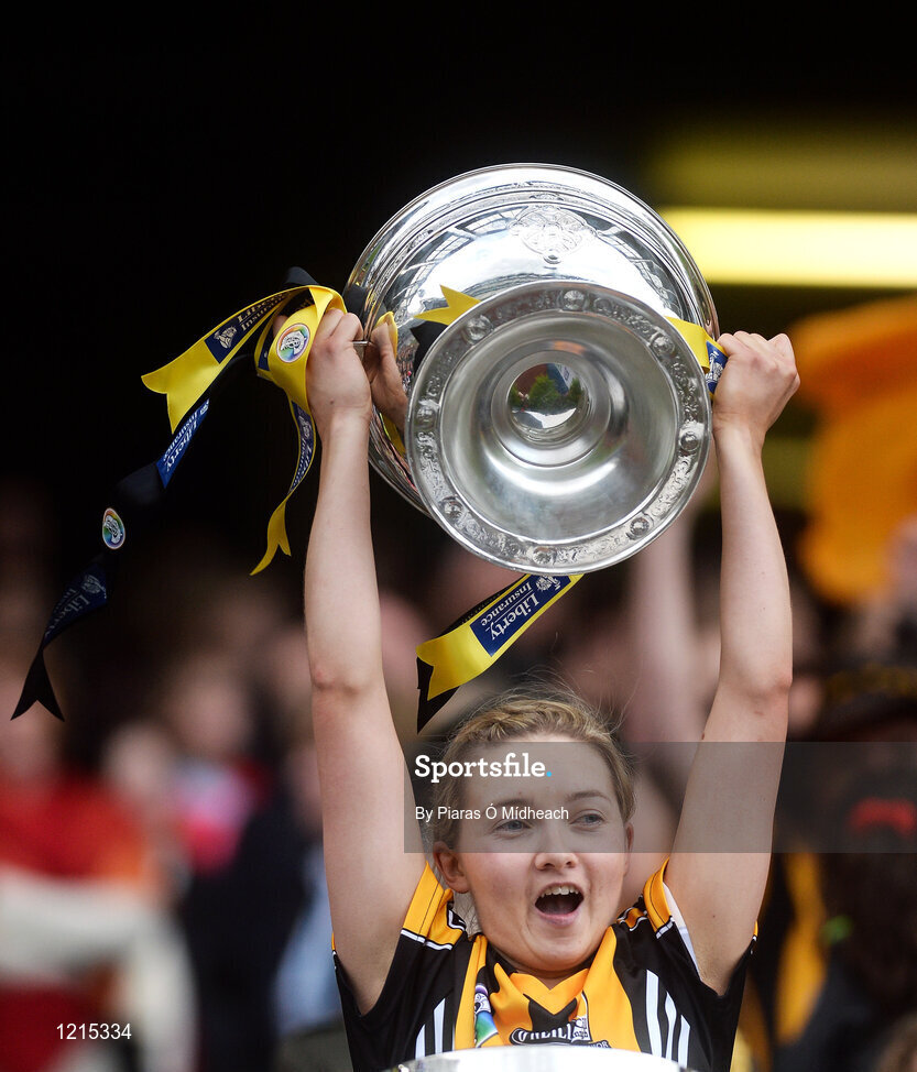 11 September 2016; Michelle Quilty of Kilkenny lifts the O'Duffy Cup after the Liberty Insurance All-Ireland Senior Camogie Championship Final match between Cork and Kilkenny at Croke Park in Dublin. Photo by Piaras Ó Mídheach/Sportsfile