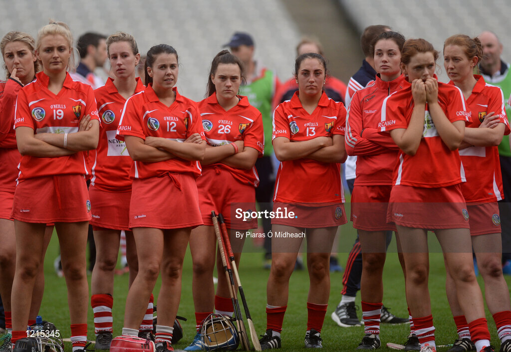 11 September 2016; Cork players dejected after the Liberty Insurance All-Ireland Senior Camogie Championship Final match between Cork and Kilkenny at Croke Park in Dublin. Photo by Piaras Ó Mídheach/Sportsfile
