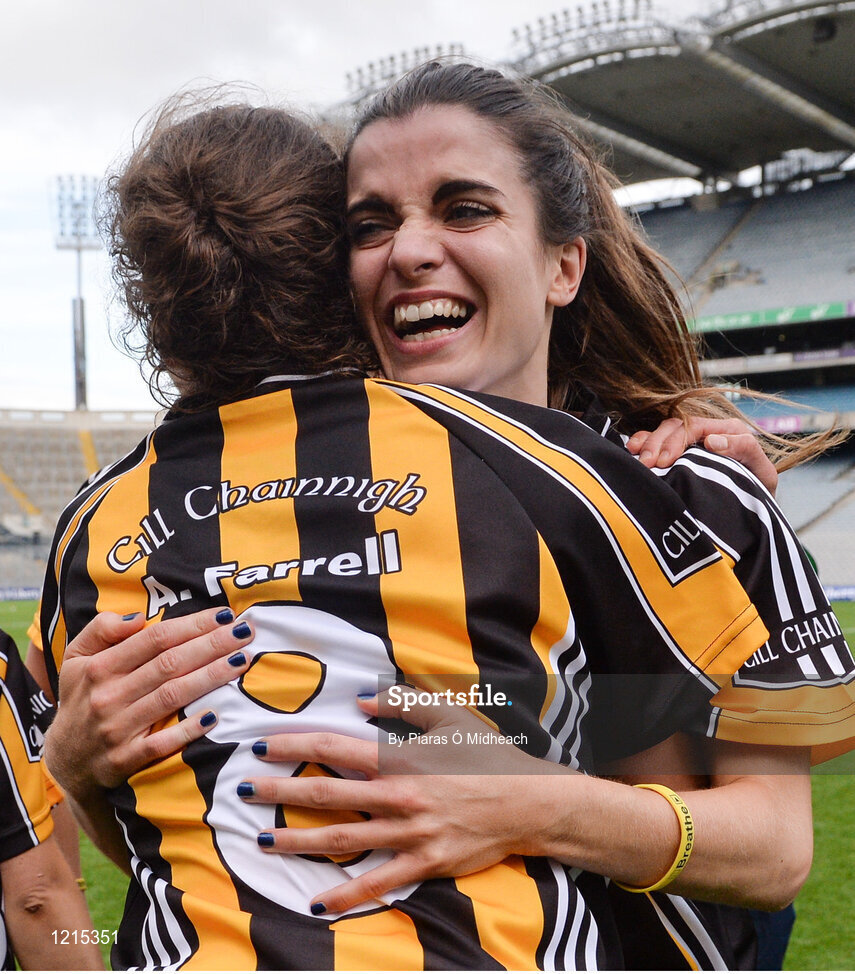 11 September 2016; Kilkenny's Davina Tobin, right, and Anna Farrell celebrate after the Liberty Insurance All-Ireland Senior Camogie Championship Final match between Cork and Kilkenny at Croke Park in Dublin. Photo by Piaras Ó Mídheach/Sportsfile