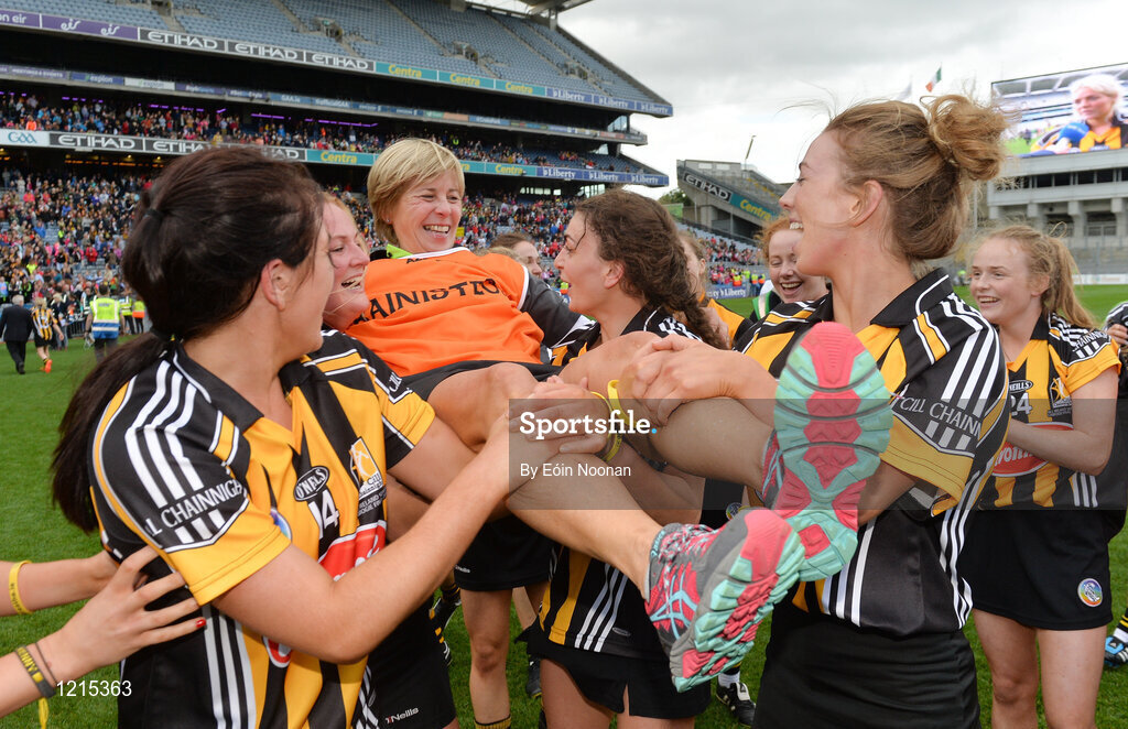 11 September 2016; Kilkenny players celebrate with Kilkenny manager Ann Downey after the Liberty Insurance All-Ireland Senior Camogie Championship Final match between Cork and Kilkenny at Croke Park in Dublin. Photo by Eóin Noonan/Sportsfile