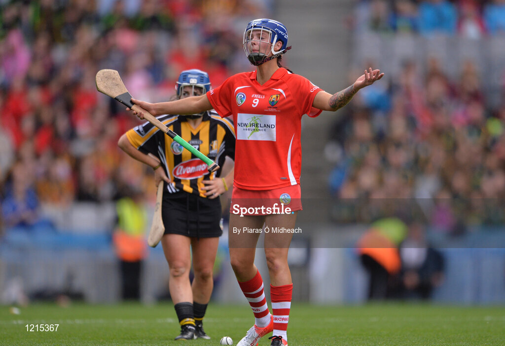 11 September 2016; Ashling Thompson of Cork reacts after conceding a free during the Liberty Insurance All-Ireland Senior Camogie Championship Final match between Cork and Kilkenny at Croke Park in Dublin. Photo by Piaras Ó Mídheach/Sportsfile