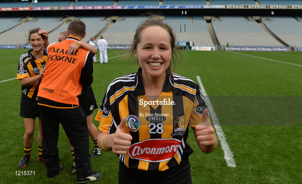 11 September 2016; Aoife O'Carroll of Kilkenny celebrates after the Liberty Insurance All-Ireland Senior Camogie Championship Final match between Cork and Kilkenny at Croke Park in Dublin. Photo by Eóin Noonan/Sportsfile