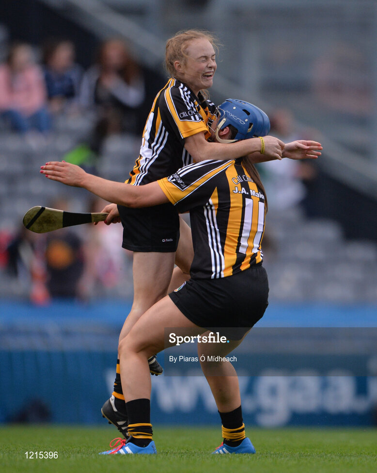 11 September 2016; Laura Murphy of Kilkenny, left, celebrates with team-mate Julie Ann Malone celebrates after the Liberty Insurance All-Ireland Senior Camogie Championship Final match between Cork and Kilkenny at Croke Park in Dublin. Photo by Piaras Ó Mídheach/Sportsfile