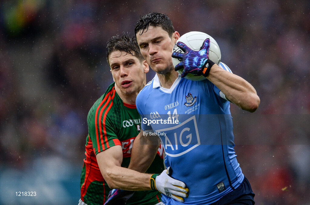 18 September 2016; Diarmuid Connolly of Dublin in action against Lee Keegan of Mayo during the GAA Football All-Ireland Senior Championship Final match between Dublin and Mayo at Croke Park in Dublin. Photo by Seb Daly/Sportsfile