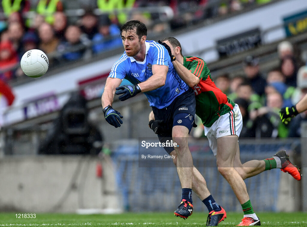 18 September 2016; Michael Darragh Macauley of Dublin in action against Colm Boyle of Mayo during the GAA Football All-Ireland Senior Championship Final match between Dublin and Mayo at Croke Park in Dublin. Photo by Ramsey Cardy/Sportsfile
