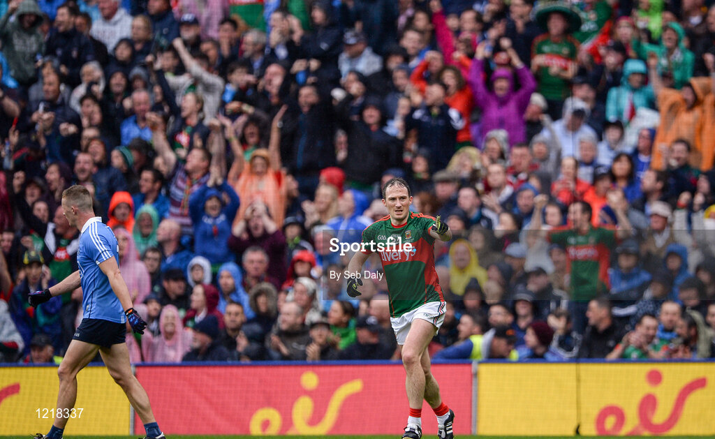 18 September 2016; Alan Dillon of Mayo celebrates after scoring a point for his side during the GAA Football All-Ireland Senior Championship Final match between Dublin and Mayo at Croke Park in Dublin. Photo by Seb Daly/Sportsfile