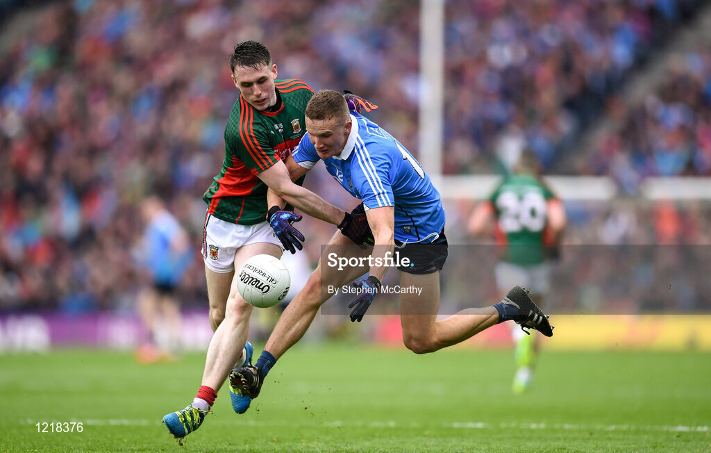 18 September 2016; Ciarán Kilkenny of Dublin in action against Patrick Durcan of Mayo during the GAA Football All-Ireland Senior Championship Final match between Dublin and Mayo at Croke Park in Dublin. Photo by Stephen McCarthy/Sportsfile