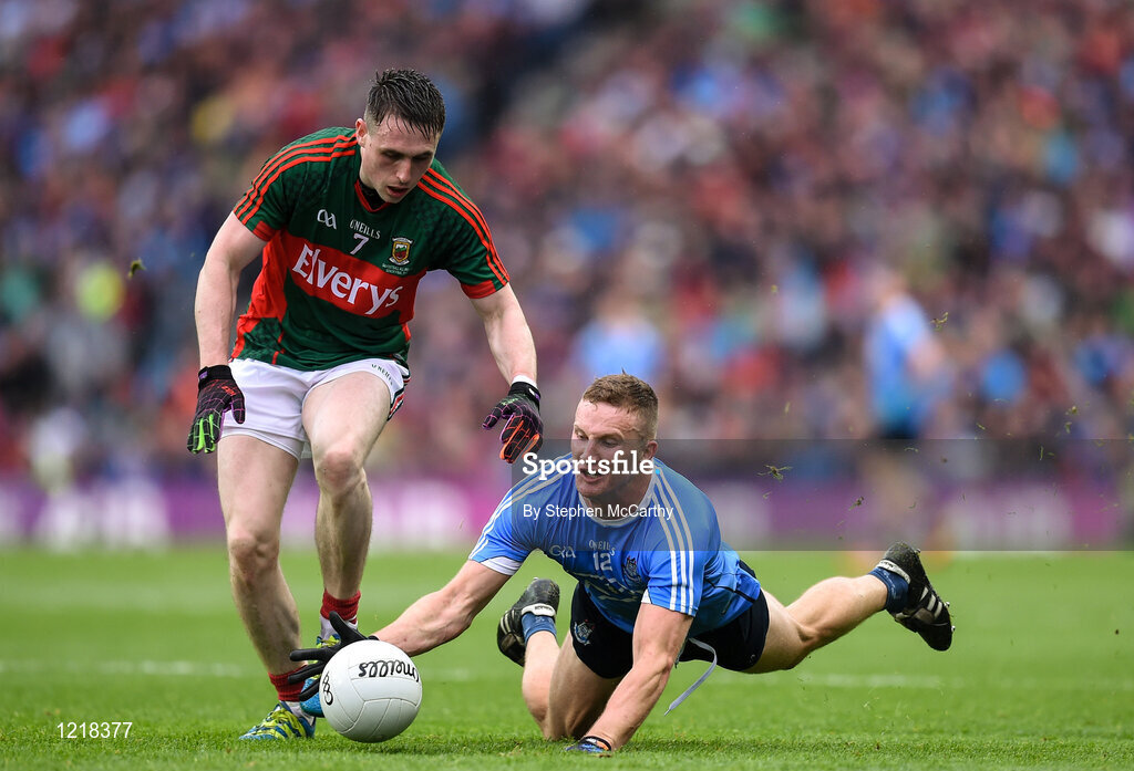 18 September 2016; Ciarán Kilkenny of Dublin in action against Patrick Durcan of Mayo during the GAA Football All-Ireland Senior Championship Final match between Dublin and Mayo at Croke Park in Dublin. Photo by Stephen McCarthy/Sportsfile