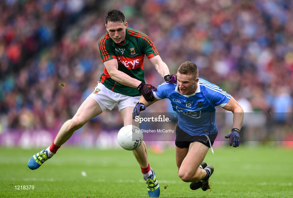 18 September 2016; Ciarán Kilkenny of Dublin in action against Patrick Durcan of Mayo during the GAA Football All-Ireland Senior Championship Final match between Dublin and Mayo at Croke Park in Dublin. Photo by Stephen McCarthy/Sportsfile