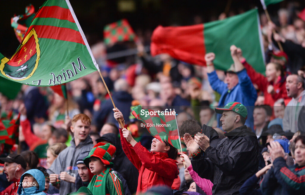 18 September 2016; Mayo Supporters celebrate after Cillian O'Connor of Mayo scores an equalising point during the GAA Football All-Ireland Senior Championship Final match between Dublin and Mayo at Croke Park in Dublin. Photo by Eóin Noonan/Sportsfile