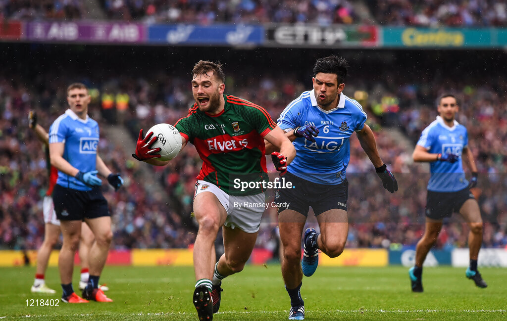 18 September 2016; Aidan O'Shea of Mayo is tackled by Cian O'Sullivan of Dublin during the GAA Football All-Ireland Senior Championship Final match between Dublin and Mayo at Croke Park in Dublin. Photo by Ramsey Cardy/Sportsfile