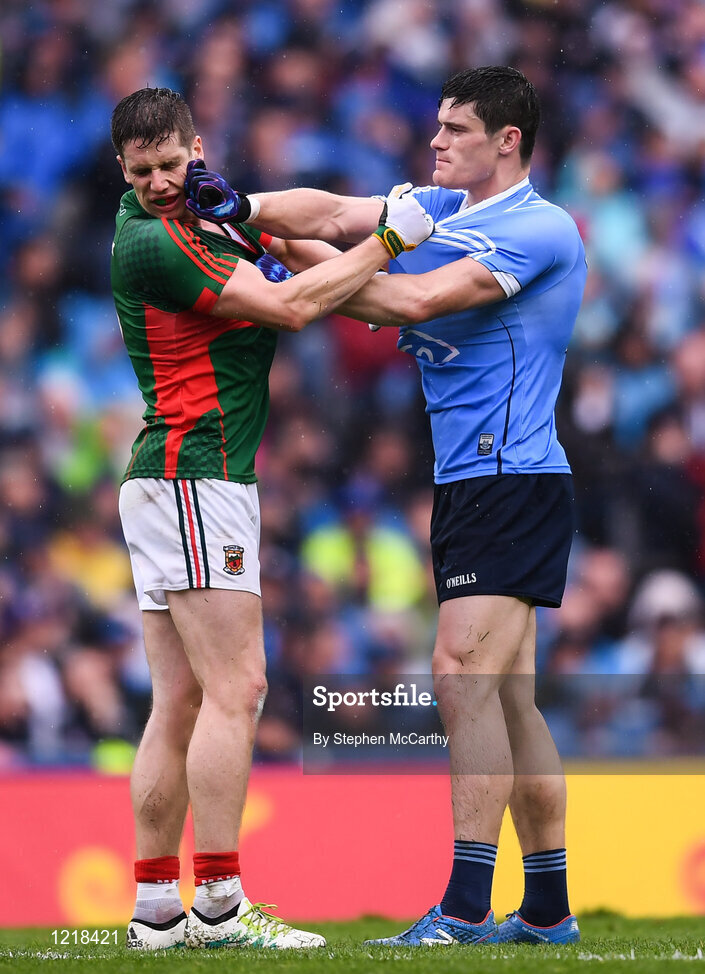 18 September 2016; Lee Keegan of Mayo and Diarmuid Connolly of Dublin during the GAA Football All-Ireland Senior Championship Final match between Dublin and Mayo at Croke Park in Dublin. Photo by Stephen McCarthy/Sportsfile