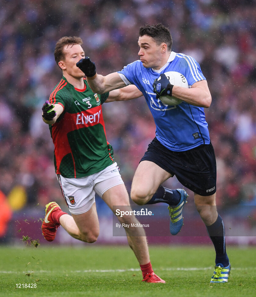 18 September 2016; Paddy Andrews of Dublin in action against Donal Vaughan of Mayo during the GAA Football All-Ireland Senior Championship Final match between Dublin and Mayo at Croke Park in Dublin. Photo by Ray McManus/Sportsfile