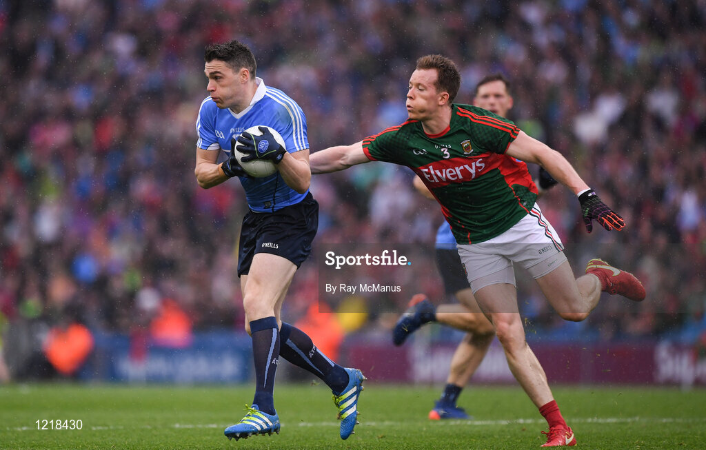 18 September 2016; Paddy Andrews of Dublin in action against Donal Vaughan of Mayo during the GAA Football All-Ireland Senior Championship Final match between Dublin and Mayo at Croke Park in Dublin. Photo by Ray McManus/Sportsfile