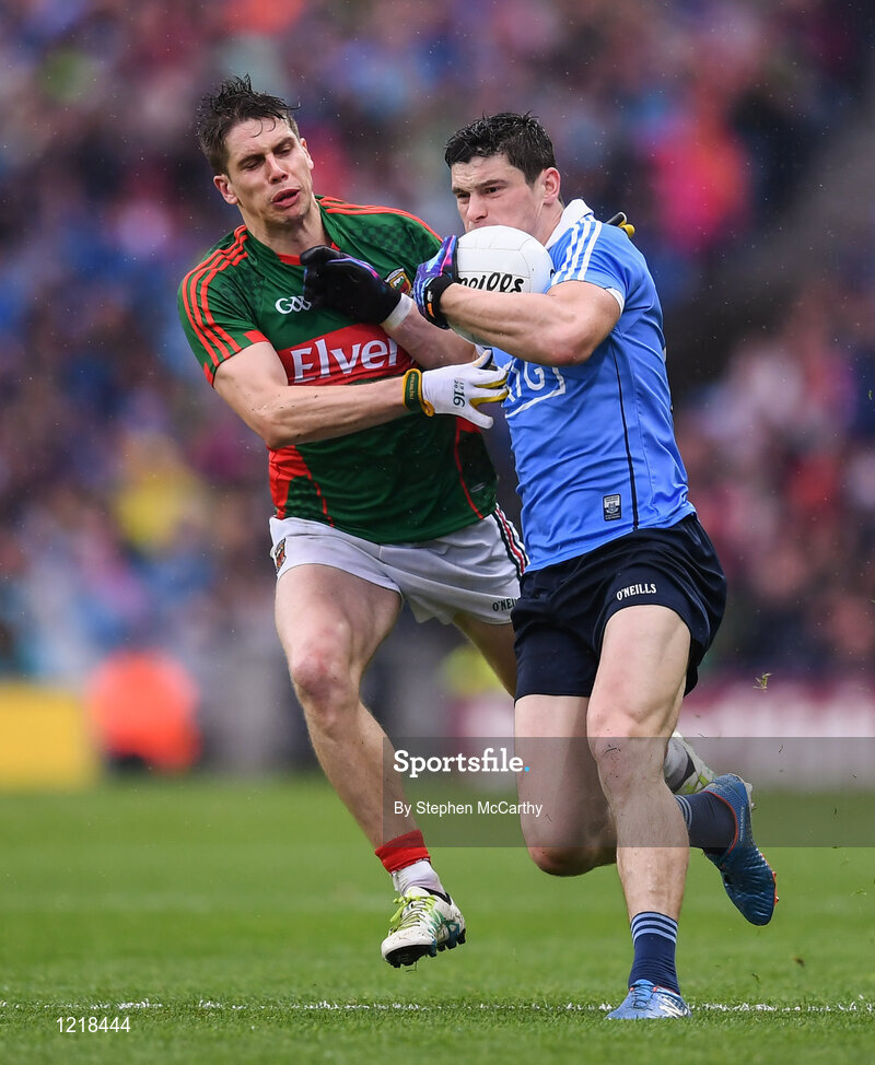 18 September 2016; Diarmuid Connolly of Dublin in action against Lee Keegan of Mayo during the GAA Football All-Ireland Senior Championship Final match between Dublin and Mayo at Croke Park in Dublin. Photo by Stephen McCarthy/Sportsfile