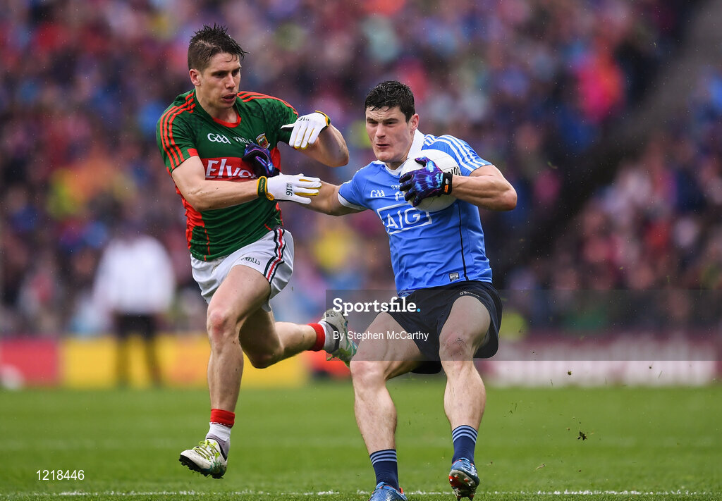 18 September 2016; Diarmuid Connolly of Dublin in action against Lee Keegan of Mayo during the GAA Football All-Ireland Senior Championship Final match between Dublin and Mayo at Croke Park in Dublin. Photo by Stephen McCarthy/Sportsfile