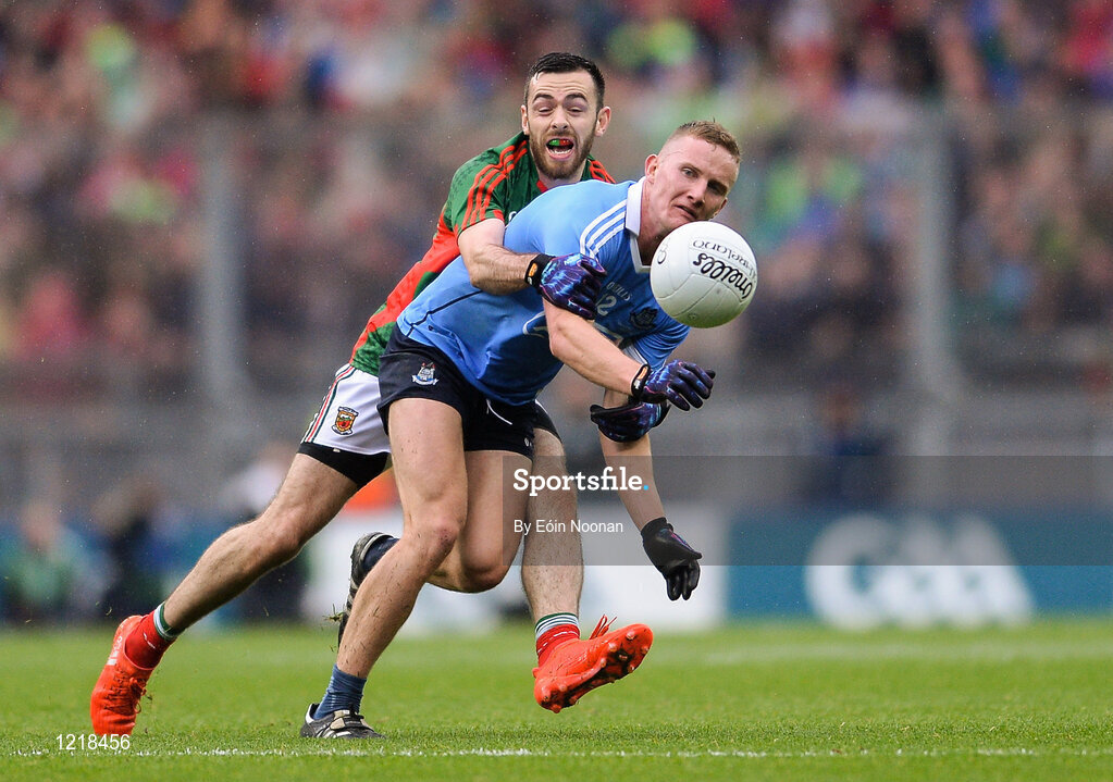 18 September 2016; Ciarán Kilkenny of Dublin in action against Kevin McLoughlin of Mayo during the GAA Football All-Ireland Senior Championship Final match between Dublin and Mayo at Croke Park in Dublin. Photo by Eóin Noonan/Sportsfile
