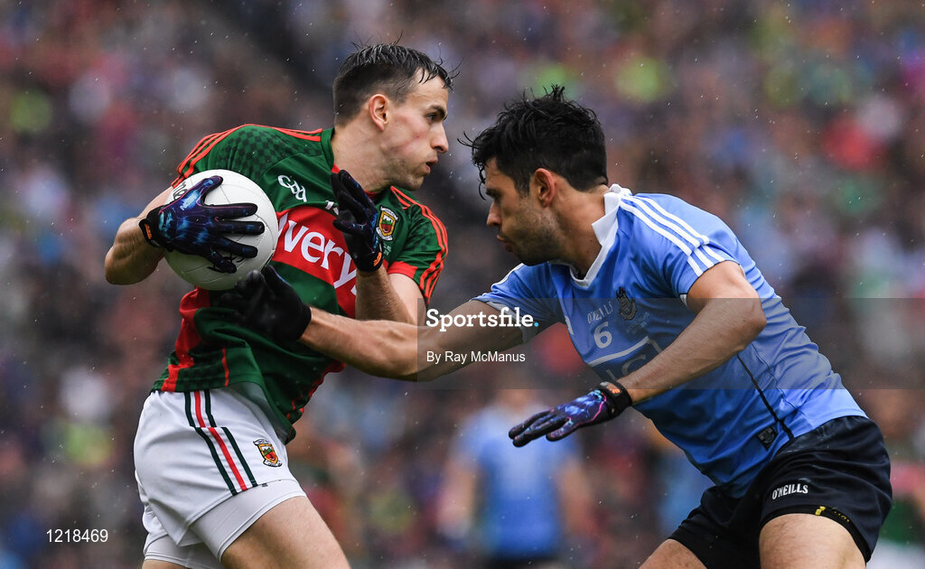 18 September 2016; Jason Doherty of Mayo in action against Cian O'Sullivan of Dublin during the GAA Football All-Ireland Senior Championship Final match between Dublin and Mayo at Croke Park in Dublin. Photo by Ray McManus/Sportsfile