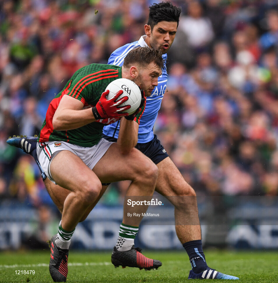 18 September 2016; Aidan O'Shea of Mayo in action against Cian O'Sullivan of Dublin during the GAA Football All-Ireland Senior Championship Final match between Dublin and Mayo at Croke Park in Dublin. Photo by Ray McManus/Sportsfile