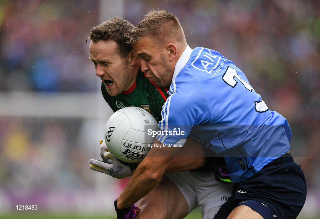 18 September 2016; Andy Moran of Mayo in action against Jonny Cooper of Dublin during the GAA Football All-Ireland Senior Championship Final match between Dublin and Mayo at Croke Park in Dublin. Photo by Ray McManus/Sportsfile