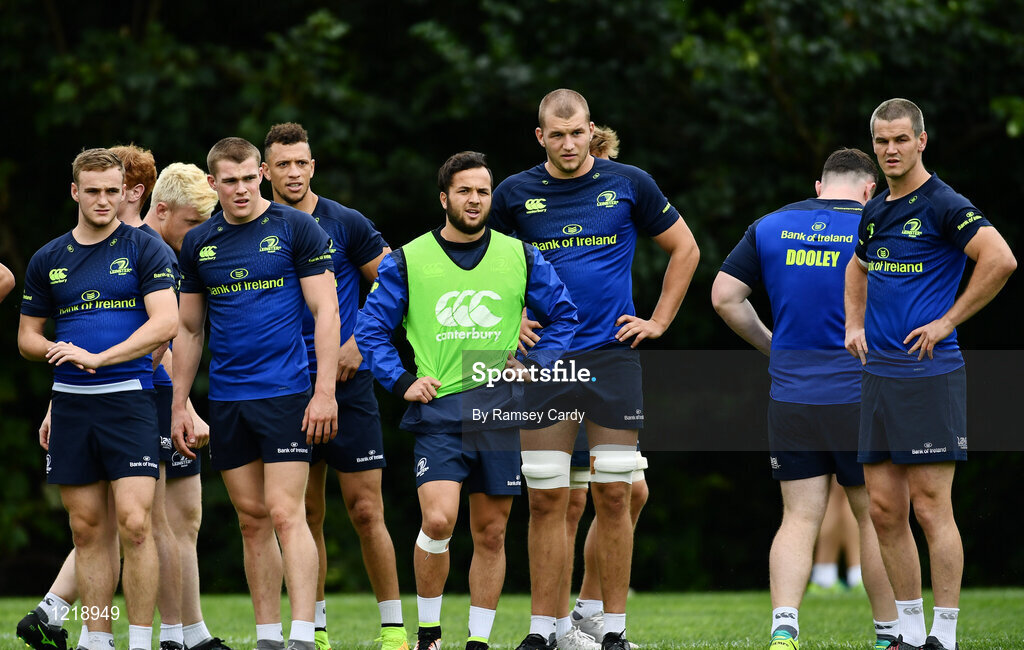 19 September 2016; Leinster players, from left, Nick McCarthy, Garry Ringrose, Zane Kirchner, Jamison Gibson-Park, Ross Molony and Jonathan Sexton during squad training at UCD, Belfield in Dublin. Photo by Ramsey Cardy/Sportsfile