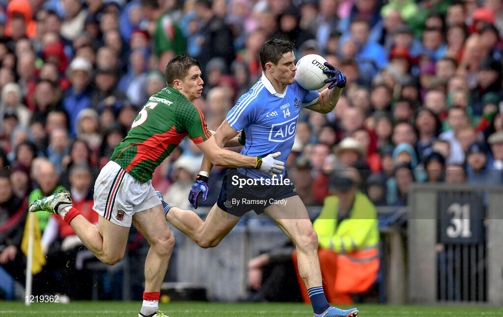18 September 2016; Diarmuid Connolly of Dublin is tackled by Lee Keegan of Mayo during the GAA Football All-Ireland Senior Championship Final match between Dublin and Mayo at Croke Park in Dublin. Photo by Ramsey Cardy/Sportsfile