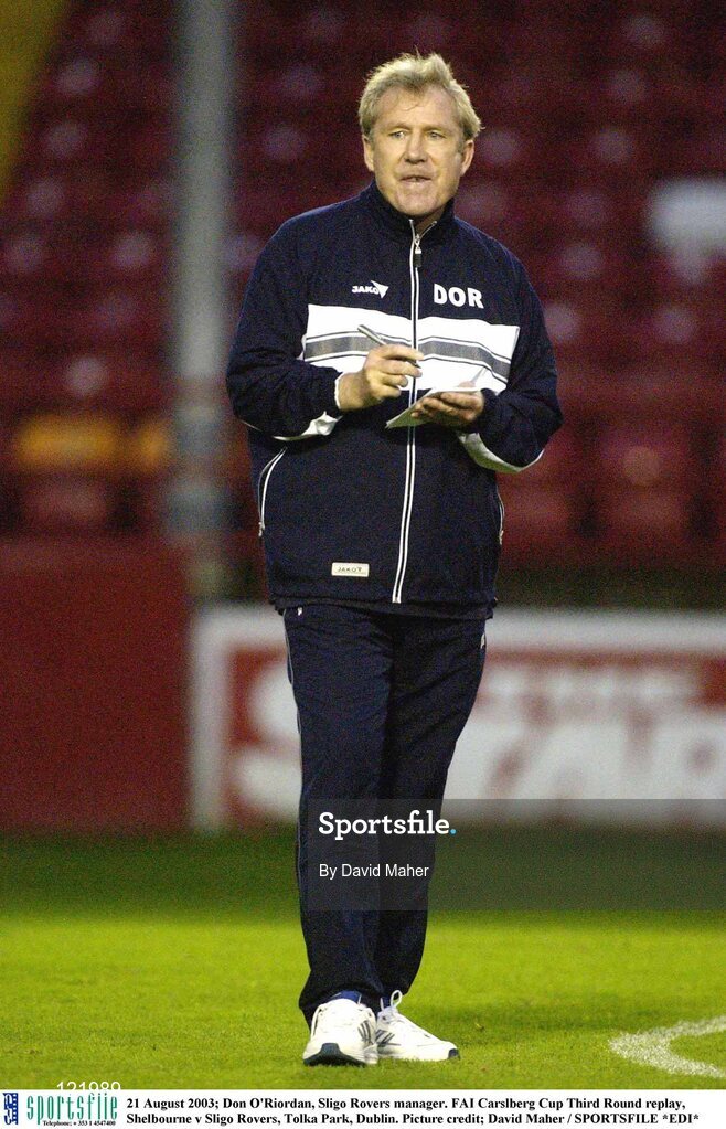 21 August 2003; Don O'Riordan, Sligo Rovers manager during the FAI Carlsberg Cup Third Round replay between Shelbourne and Sligo Rovers at Tolka Park, Dublin. Picture credit; David Maher / SPORTSFILE