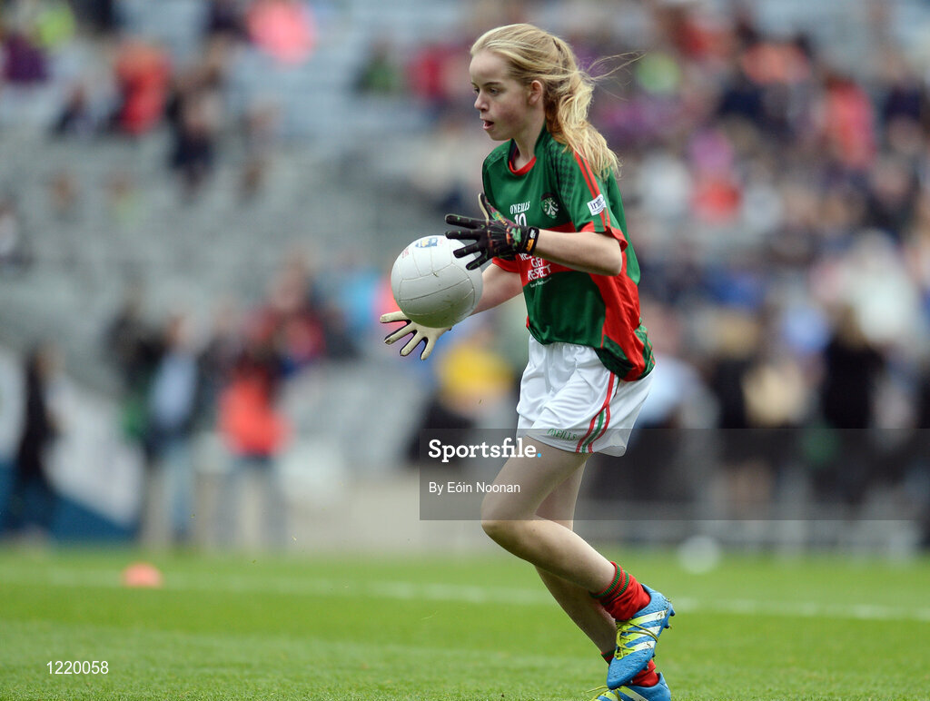 18 September 2016; Maria Farrell, Ardnagrath NS, Athlone, Westmeath, representing Mayo, in action against / during the INTO Cumann na mBunscol GAA Respect Exhibition Go Games at the GAA Football All-Ireland Senior Championship Final match between Dublin and Mayo at Croke Park in Dublin. Photo by Eóin Noonan/Sportsfile