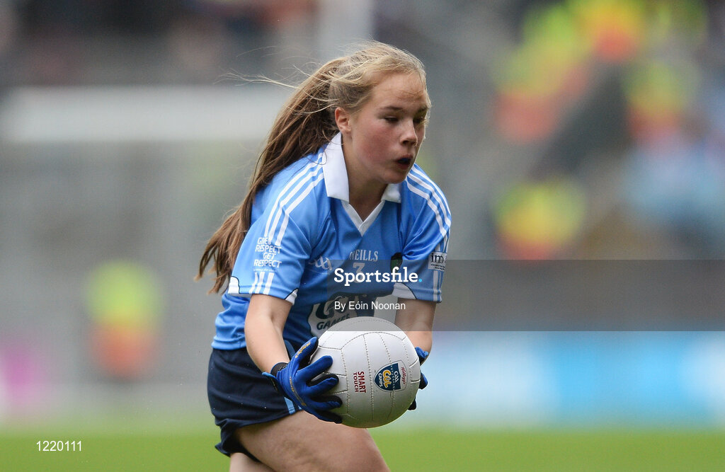 18 September 2016; Saoirse Kiernan, Ballynarry NS, Kilnaleck, Cavan, representing Dublin, during the INTO Cumann na mBunscol GAA Respect Exhibition Go Games at the GAA Football All-Ireland Senior Championship Final match between Dublin and Mayo at Croke Park in Dublin. Photo by Eóin Noonan/Sportsfile