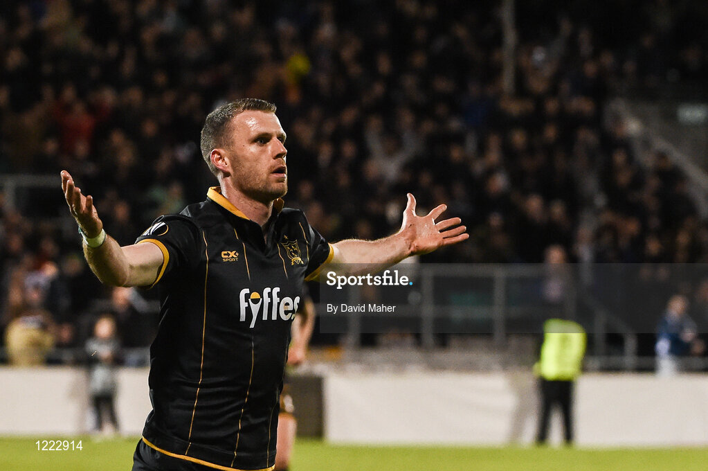 29 September 2016; Ciaran Kilduff of Dundalk celebrates after scoring his side's first goal during the UEFA Europa League Group D match between Dundalk and Maccabi Tel Aviv at Tallaght Stadium in Tallaght, Co. Dublin. Photo by David Maher/Sportsfile